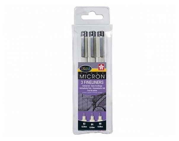 Набор линеров Pigma Micron, капиллярные ручки 3 шт. (0,3 мм., 0,4 мм., 0,5 мм.), цвет чернил: черный