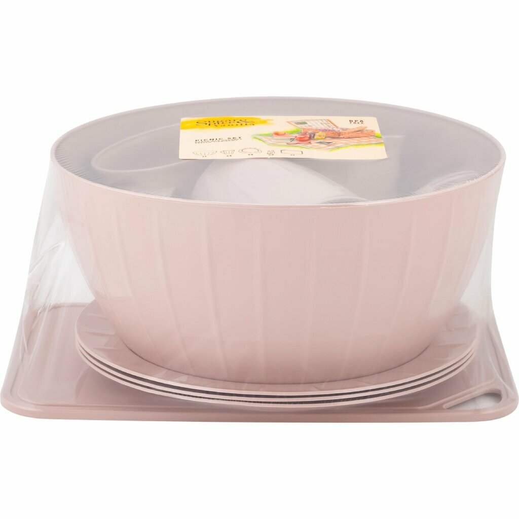 Набор посуды для пикника на 3 персоны (14 предметов) латте