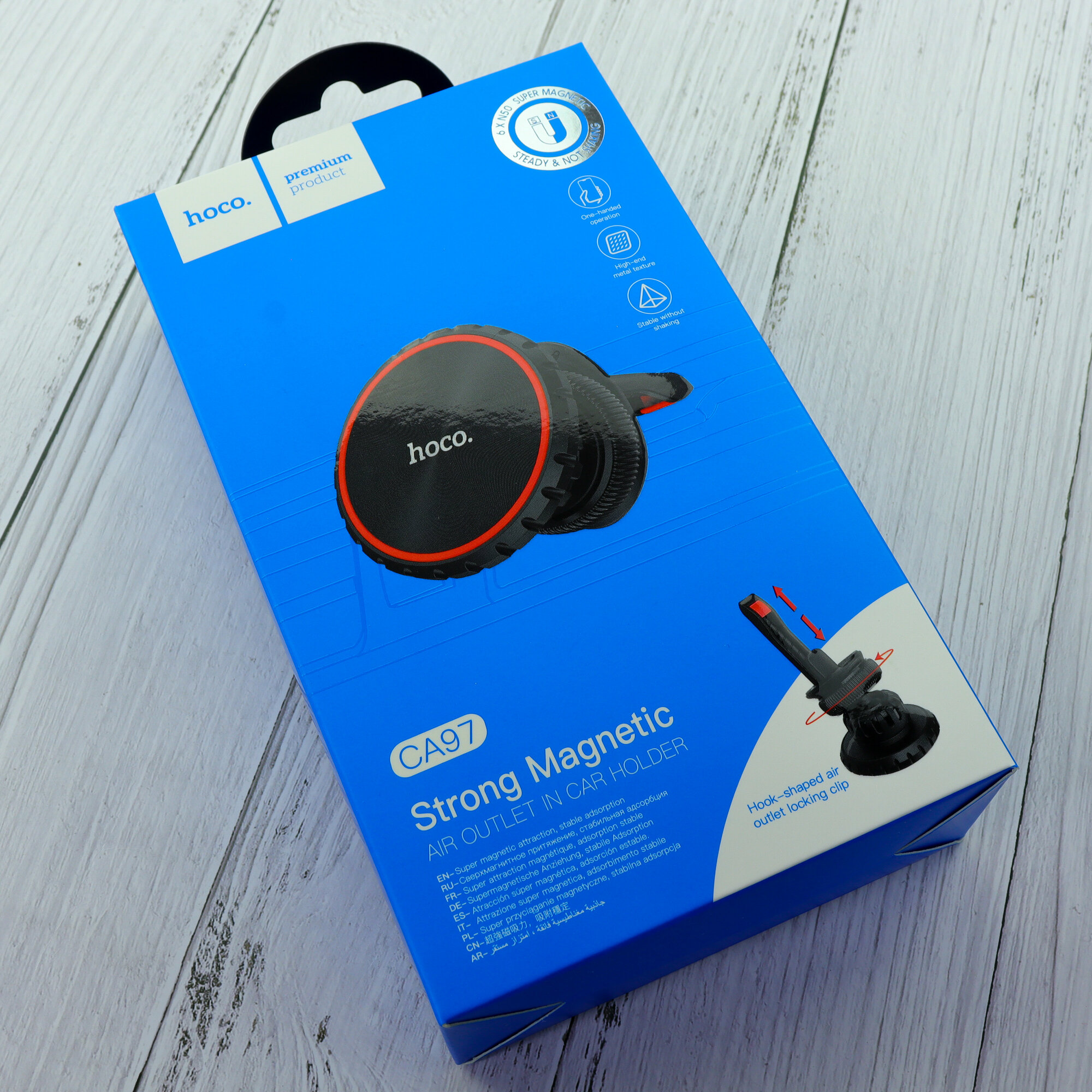 Автомобильный держатель HOCO CA97 City, магнитный, на воздуховод, черный+красный