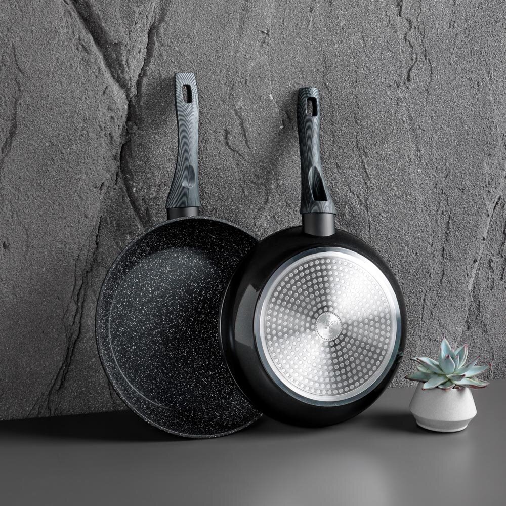 Сковорода Satoshi Карбон, 20 см, из литого алюминия с антипригарным покрытием под мрамор, без крышки, индукция
