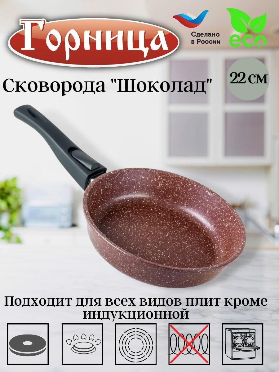 Сковорода "Горница" ф220 h55 с пластиковой съемной ручкой без крышки Шоколад с2253аш