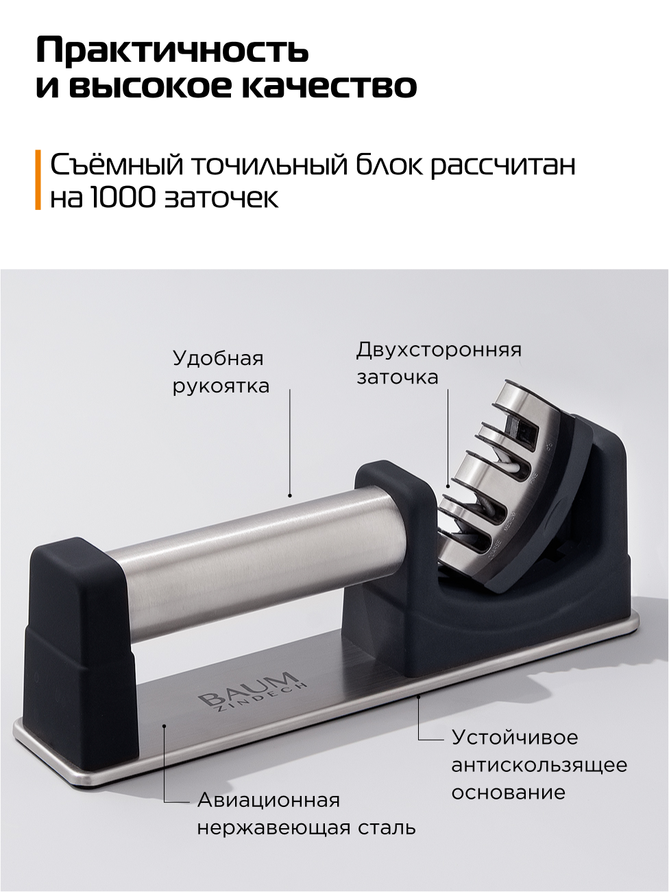 Механическая точилка для ножей BAUM ZINDECH ZRT-400, алмаз, серебристый интересное: