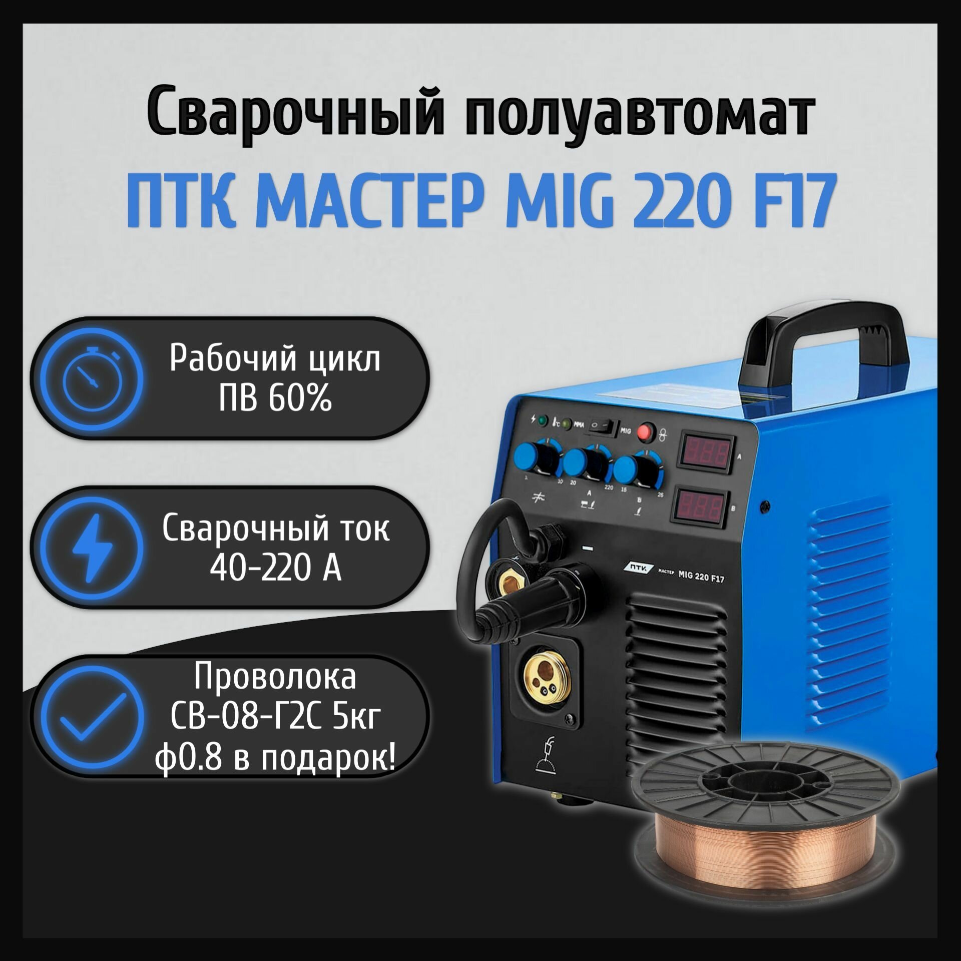 Купить Сварочный аппарат полуавтомат ПТК мастер MIG 220 F17 (Инверторный)