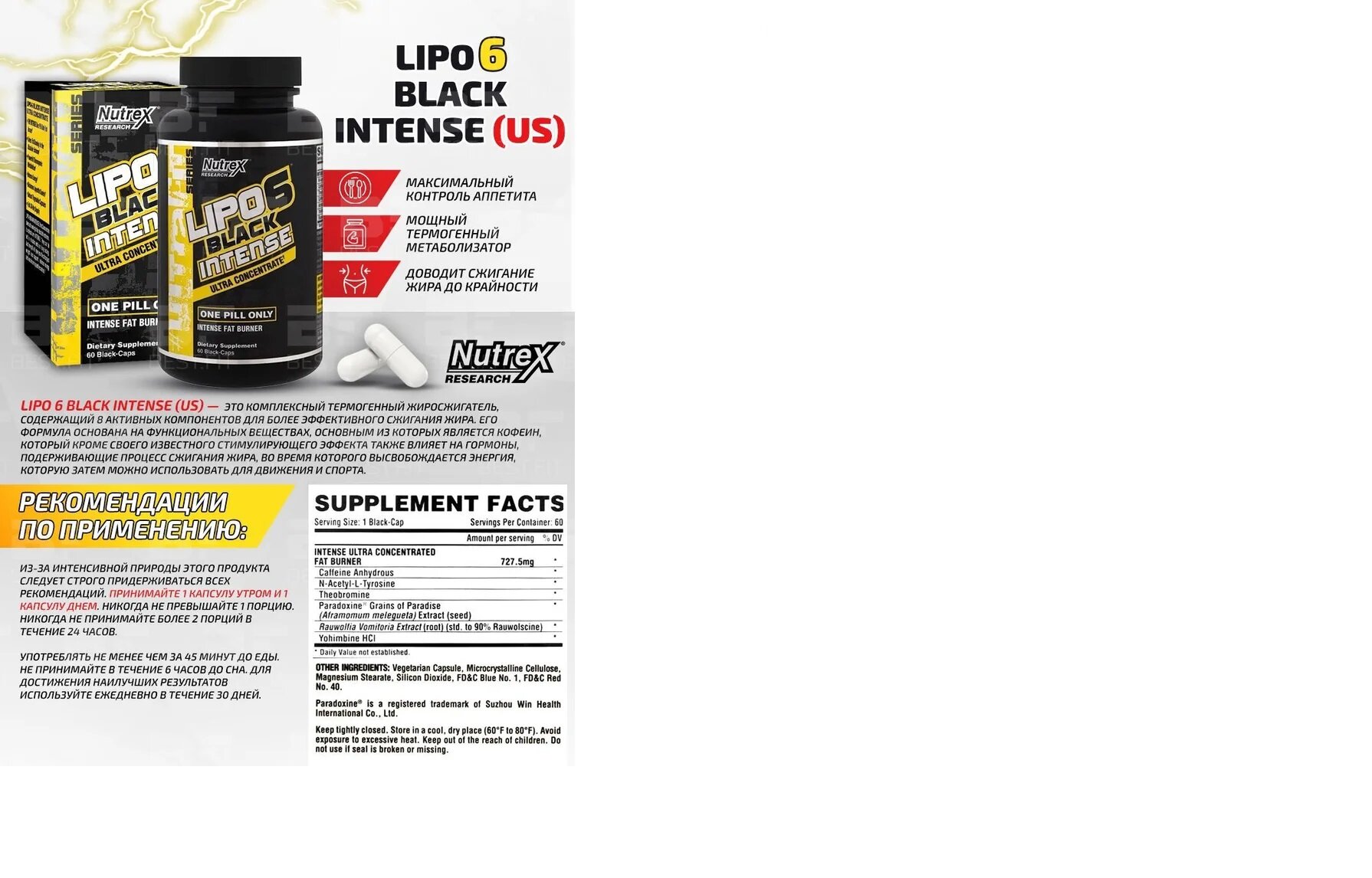 Nutrex Lipo-6 Black Intense Ultra Concentrate, 60 капсул, Европейская версия (EU)