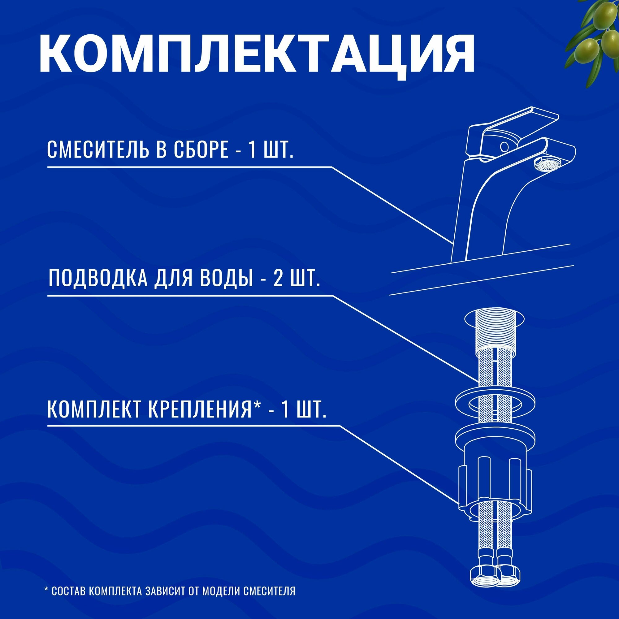 | Комплектация | Керамический картридж SILENT OLIVE’S 35 мм. Пластиковый аэратор ECO OLIVE’S. Аэратор NEOPERL Perlator HC (в новой комплектации). Гибкая подводка OLIVE’S ½’ 50 см. Латунный пьедестал Комплект крепления FAST FIX. |