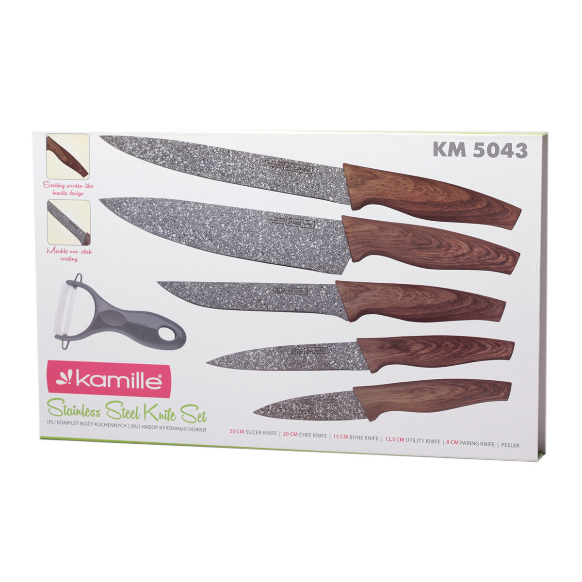 Набор кухонных ножей Kamille 6 предметов в подарочной упаковке (5 ножей+овощечистка) KM-5043