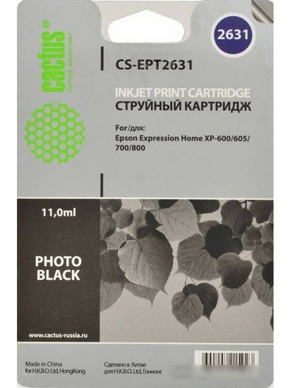 Купить Картридж струйный Cactus CS-EPT2631 фото черный 11.6мл для Epson Expression Home XP-600605700800