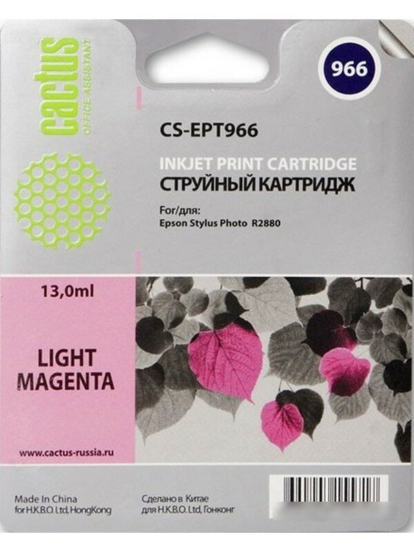 Cactus C13T09664010 CS-EPT966 Картридж для Epson Stylus Photo R2880, 13 мл, светло-пурпурный