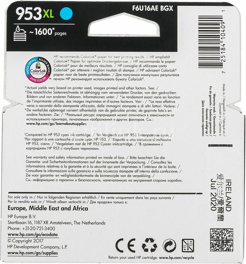 Ниже Вы можете прочитать отзывы на Картридж струйный HP (F6U16AE) Officejet Pro 8710/8210, №953XL, голубой, увеличенный ресурс 1600 стр., оригинальный, ознакомится с подробными характеристиками, посмотреть интересные обзоры и фотографии на Картридж струйный HP (F6U16AE) Officejet Pro 8710/8210, №953XL, голубой, увеличенный ресурс 1600 стр., оригинальный.