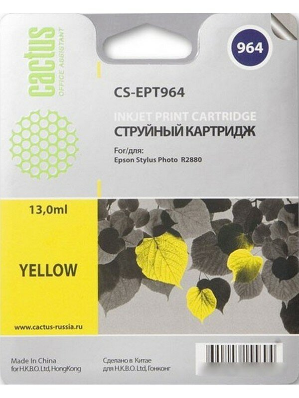 Cactus C13T09644010 CS-EPT964 Картридж для Epson Stylus Photo R2880, 13 мл, жёлтый