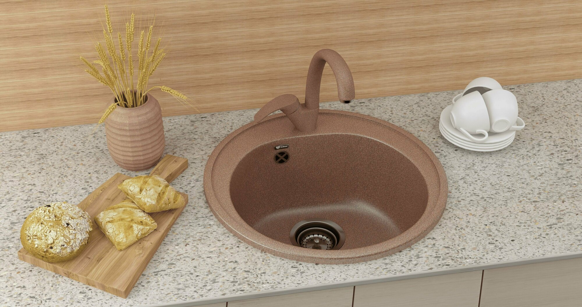 Мойка кухонная Ulgran из искусственного мрамора круглая U-101, цвет: шоколад, база: 47.5х47.5 см, арт. U-101-345
