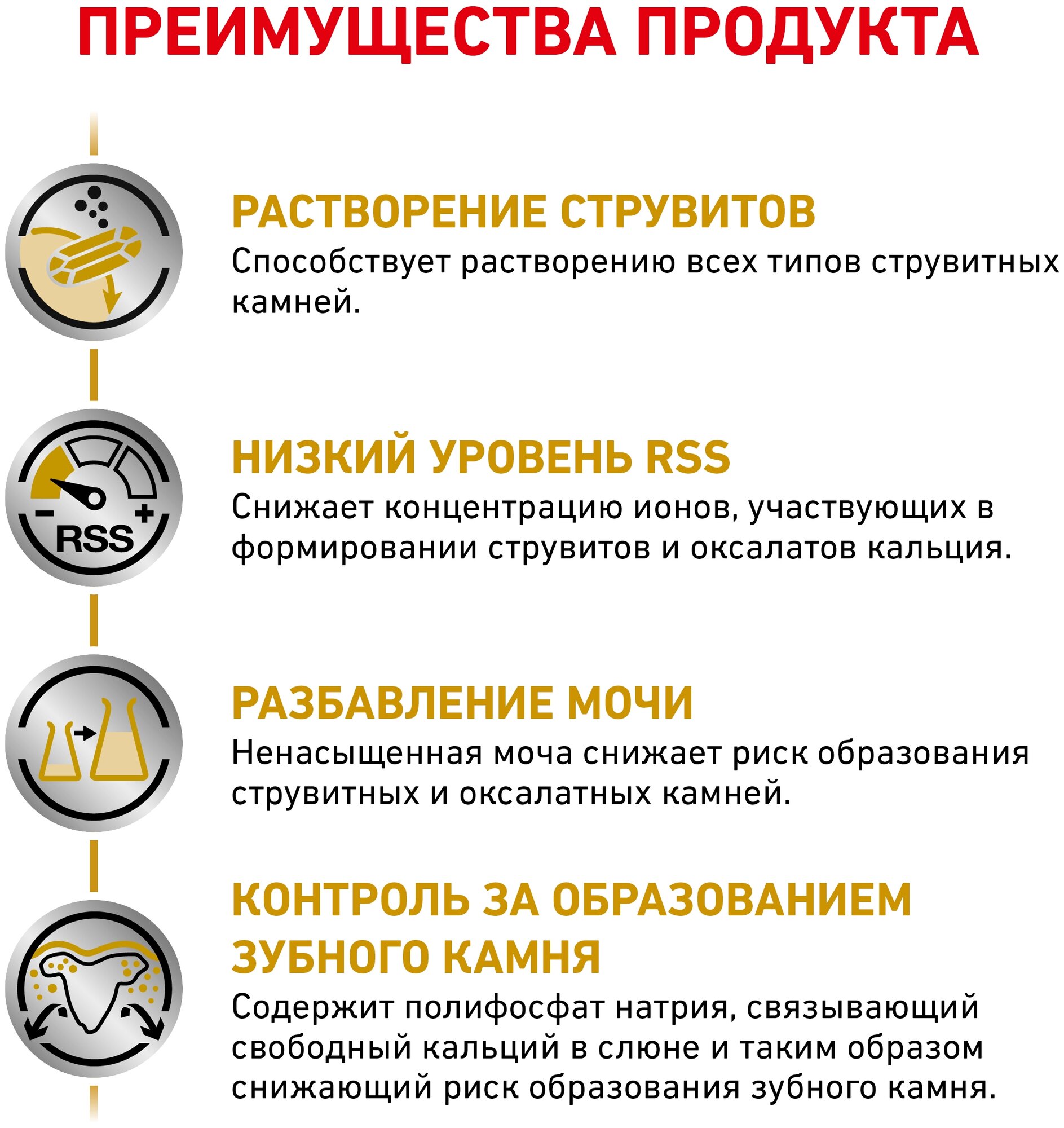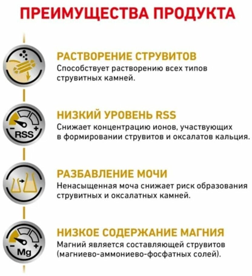 | Плюсы: | Лечебный корм при мочекаменной болезни, растворяет струвитные и оксолатные камни. Это один из немногих кормов, который растворяет оба типа камней. |
