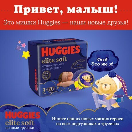 Трусики Huggies Elite Soft 6 ночные 15-25кг, 16шт интересное: