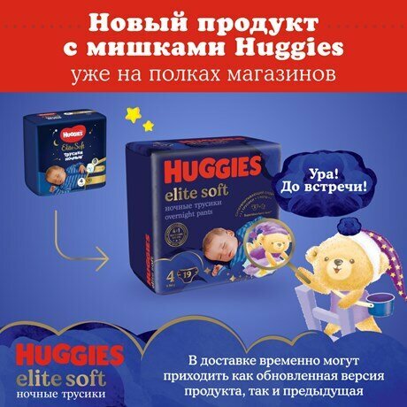 Трусики-подгузники ночные Huggies Elite soft (15-25кг)16шт. 7516265
