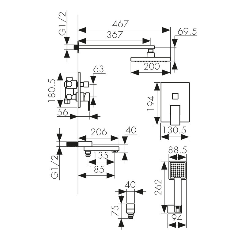 | Форма верхнего душа | квадратная |