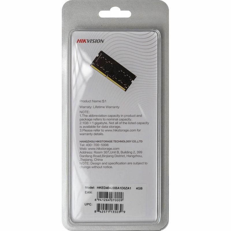 Оперативная память Hikvision HKED4042BBA1D0ZA1/4G DDR4 - 1x 4ГБ 2666МГц, для ноутбуков (SO-DIMM), Ret