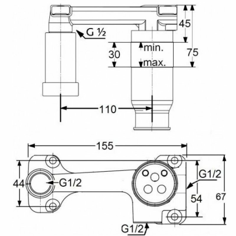 Настенный смеситель для умывальника KLUDI AMEO 412450575, внешняя монтажная часть