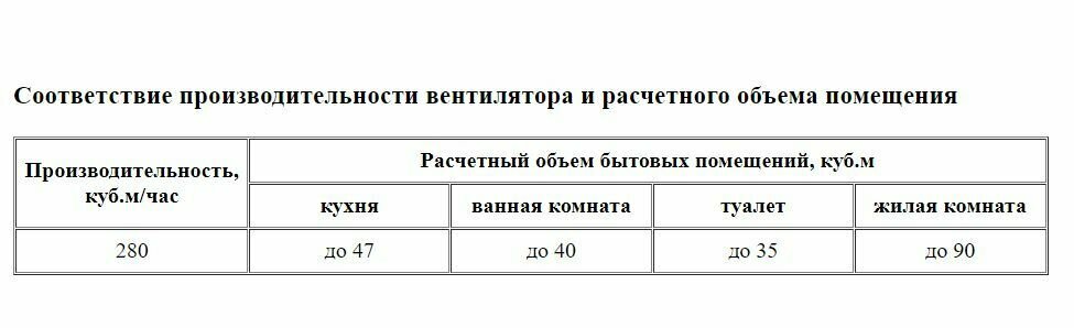 | Воздухообмен | 280 м³/час |