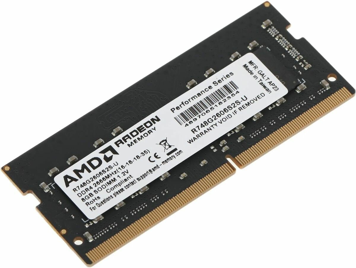 Модуль памяти 8GB AMD Radeon DDR4 2666 SO Dimm R7 Performance Series Black R748g2606s2s-u Non-ECC, .