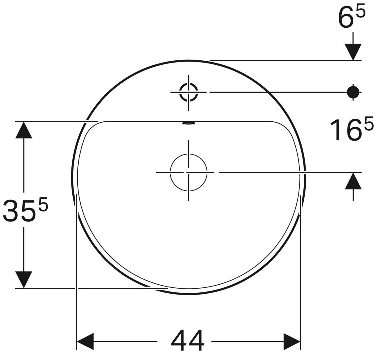 Встраиваемая сверху раковина Geberit VariForm 48х48см, арт. 500.704.01.2, санфарфор, с отв. под смеситель