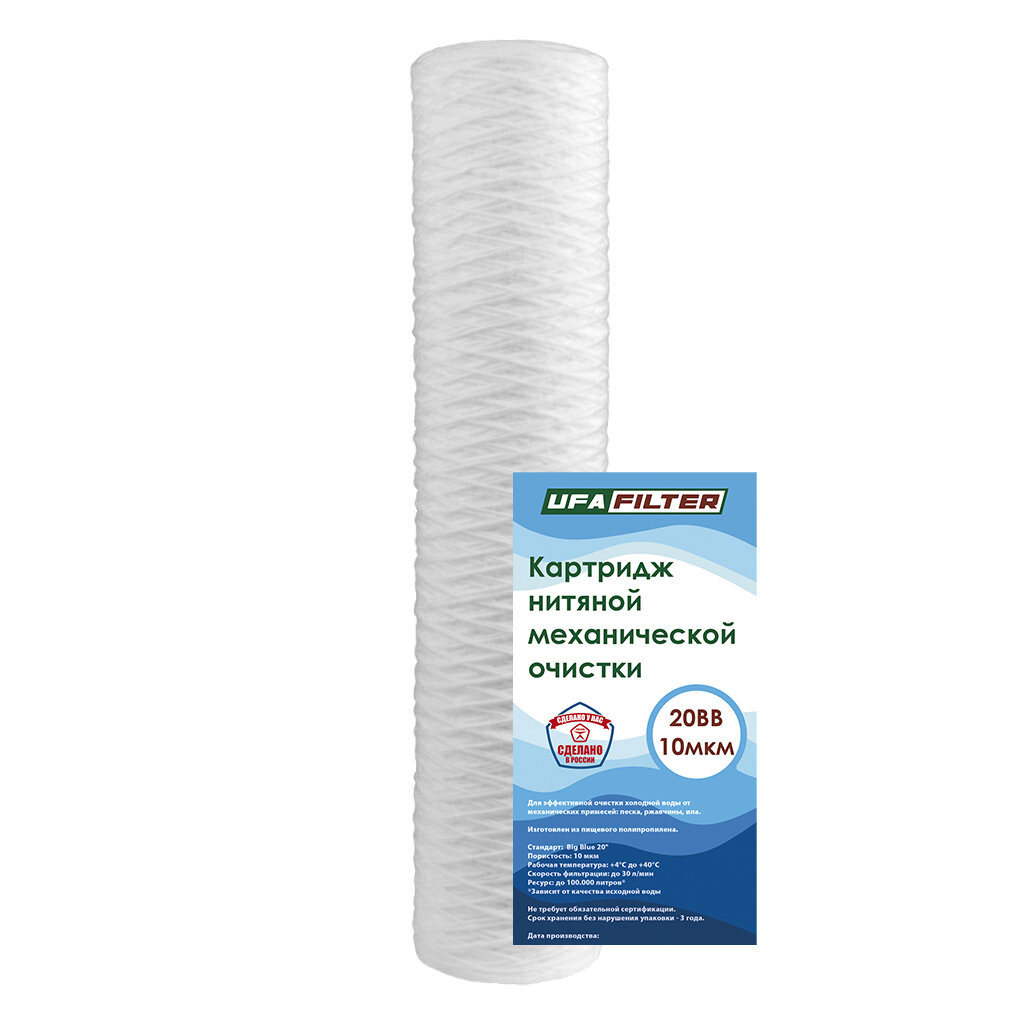 Механический нитяной картридж UFAFILTER 20BB повышенной грязеёмкости (10 микрон) от песка, ржавчины, ила интересное: