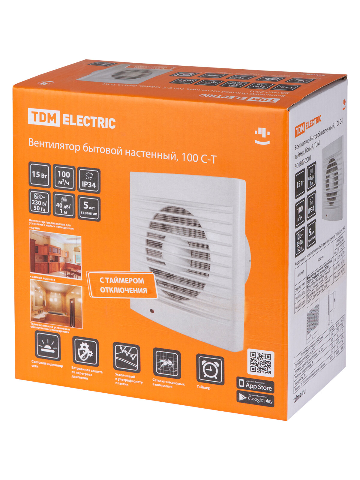 Tdm Вентилятор бытовой настенный, 100 С-Т, таймер SQ1807-2001