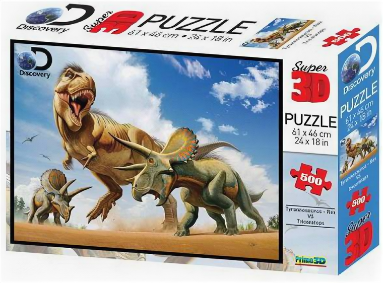 Пазл Super 3D Тираннозавр против трицератопса, 500 детал.