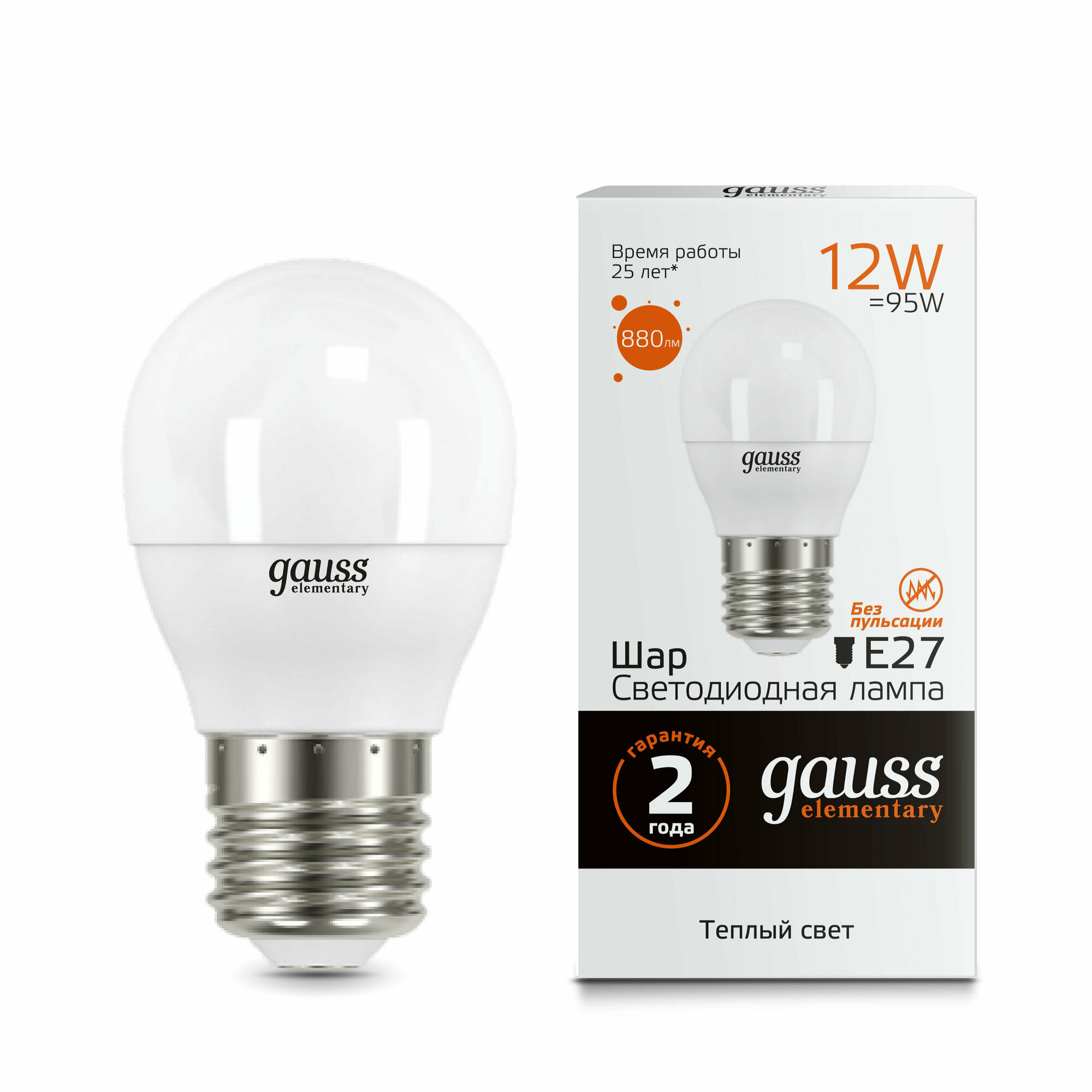 Gauss Лампа Elementary Шар 12W 880lm 3000K Е27 LED 2 шт (арт. 53212)