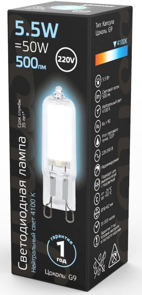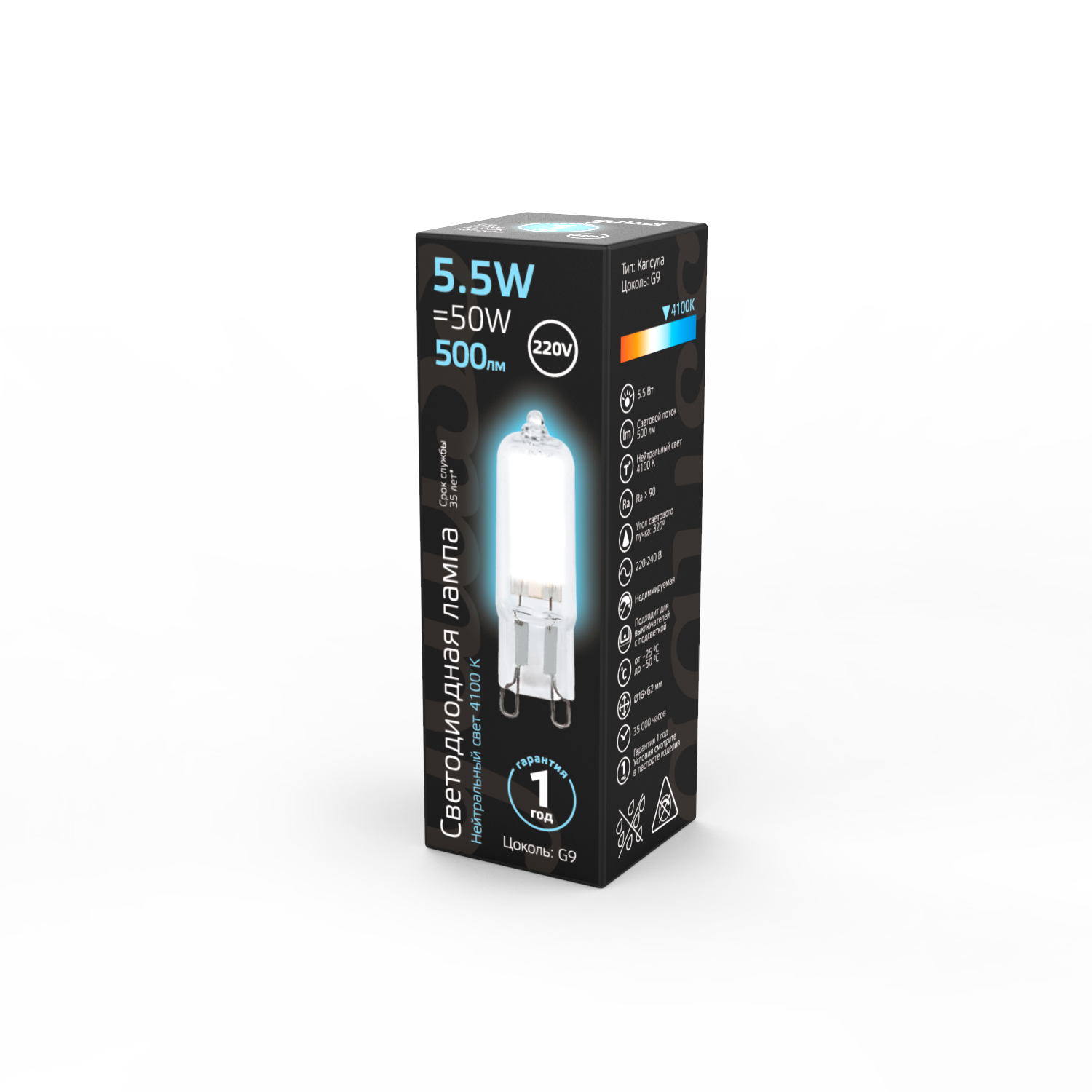 Упаковка ламп LED GAUSS G9, капсульная, 5.5Вт, G9, 10 шт. [107809205]