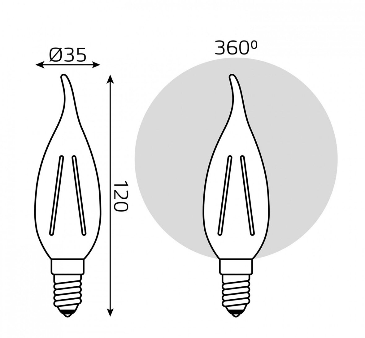 Gauss Filament Свеча на ветру E14 5W(420lm) 2700K 2K 122x35 филамент (нитевидная), прозр. 104801105
