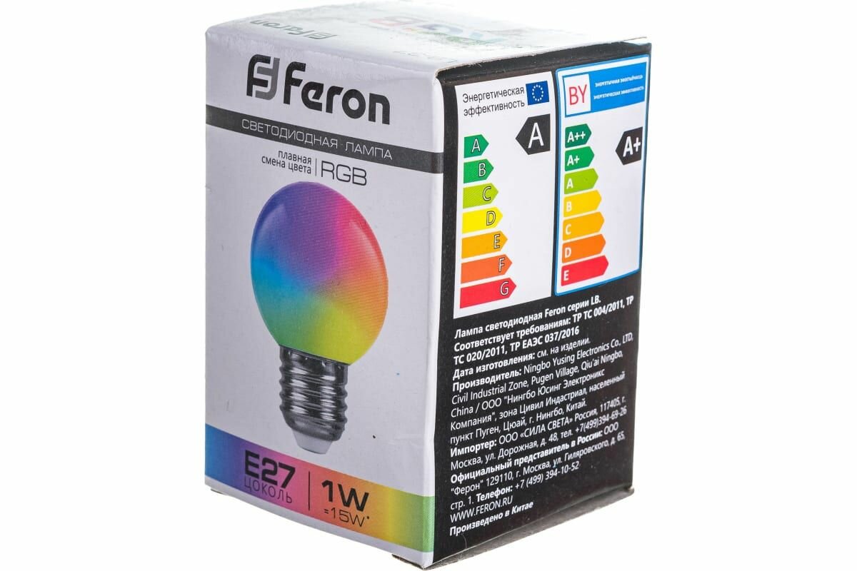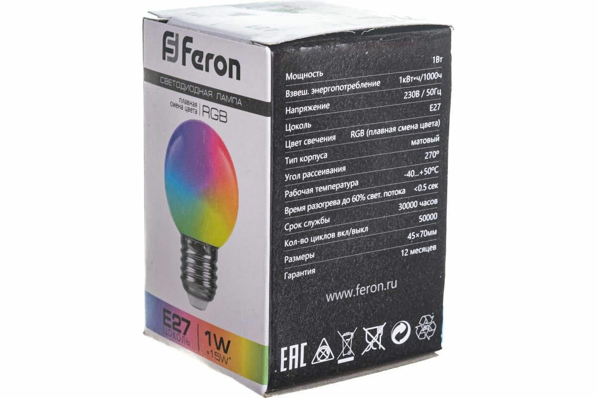 Feron LB-37 Лампа светодиодная Шарик матовый E27 1W RGB 1 шт.