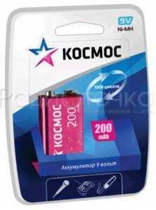 Аккумулятор 6F22 200мА. ч 1BL (блист.1шт) космос KOCNI-MH6F22(200mAh)