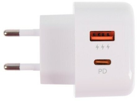 Зарядное устройство сетевое PERO TC10 USB-C 20W + USB-A Fast Charge белый, 1598914