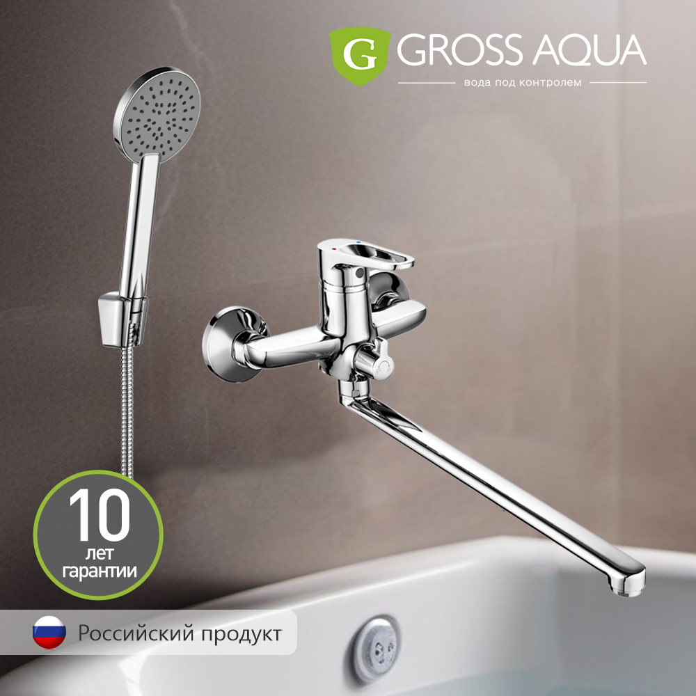 Смеситель для ванны GROSS AQUA Delta 7244268C-35L(F) с длинным изливом 350 мм