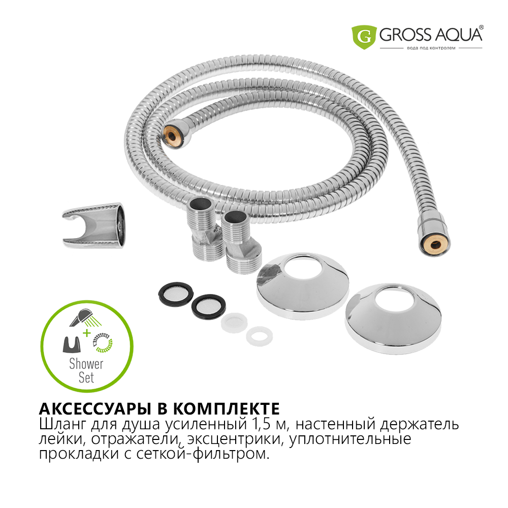 | Комплектация | корпус смесителя - 1 шт. / излив - 1 шт. / S-образный G1/2xG3/4 эксцентрик - 2 шт. / декоративные чашки - 2 шт. / уплотнительные прокладки - 2 шт. / шланг для душа - 1 шт. / лейка для душа - 1 шт. / держатель настенный для лейки с комплектом крепежа - 1 шт. |