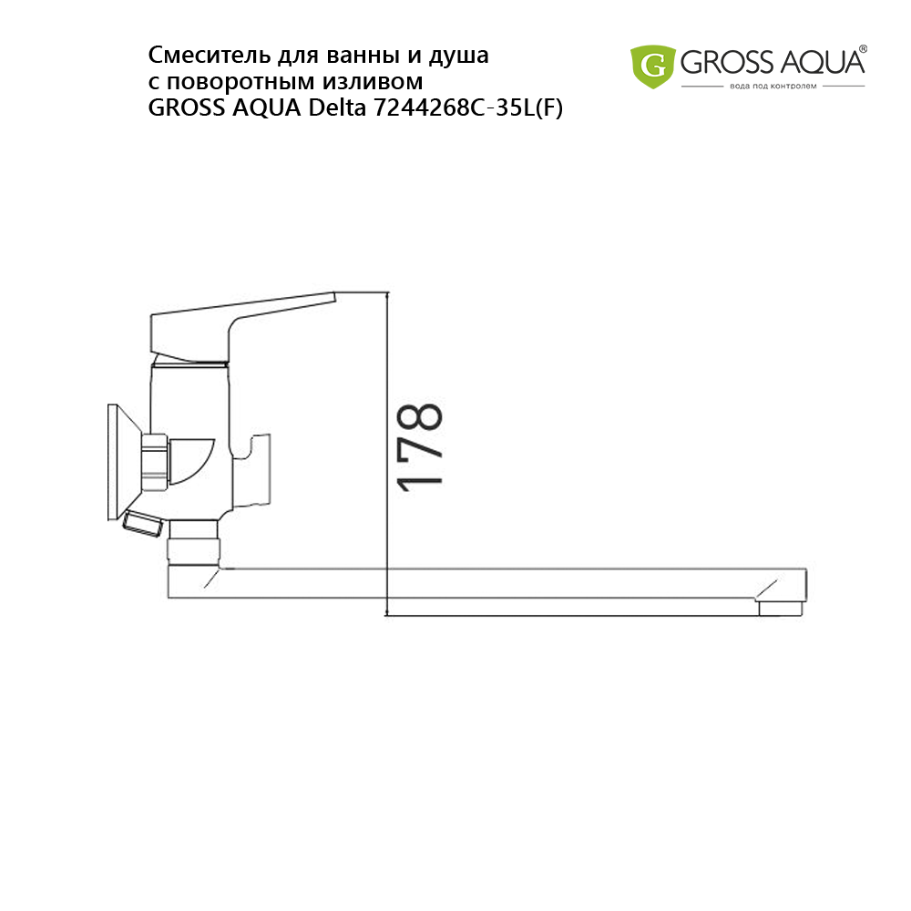 Смеситель для ванны и душа с длинным поворотным изливом Gross Aqua Delta, латунь, хром, 7244268C-35L(F).