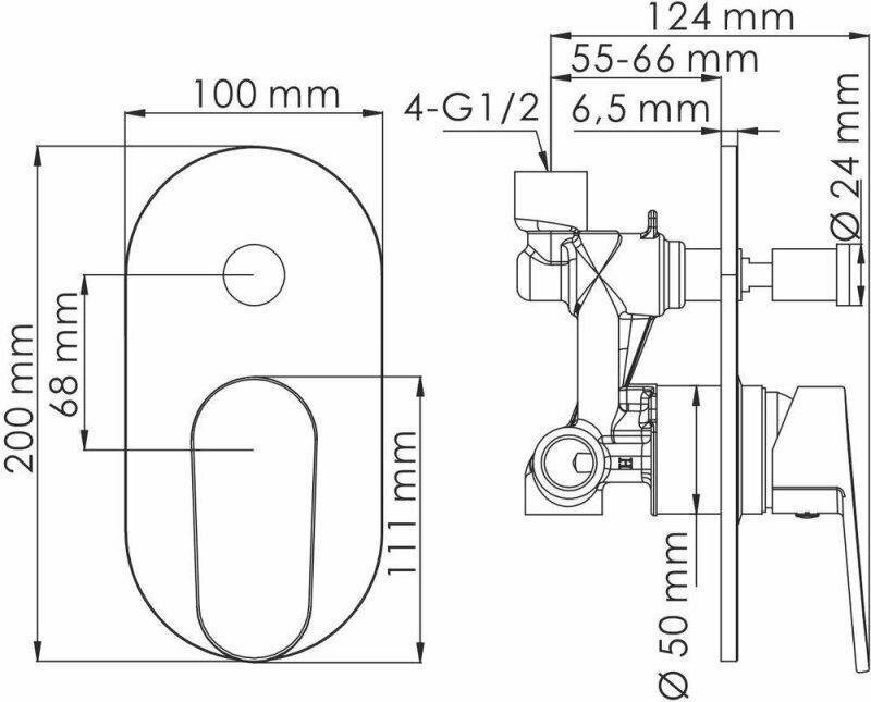 Donau A14028 Встраиваемый комплект для ванны/душа WasserKRAFT хром