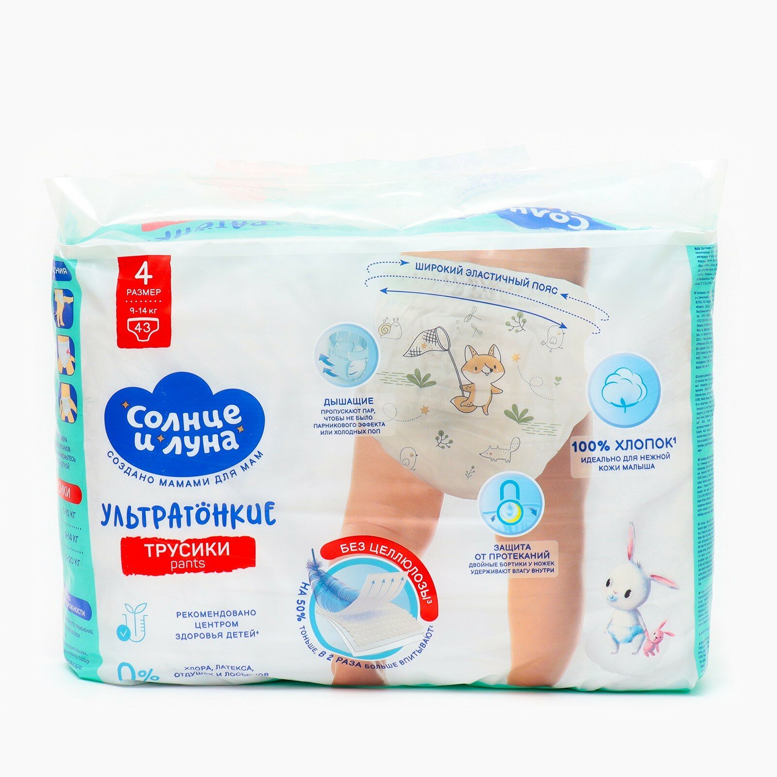 Солнце И луна ECO Подгузники -трусики одноразовые для детей 4/L 9-14кг 43шт 13281