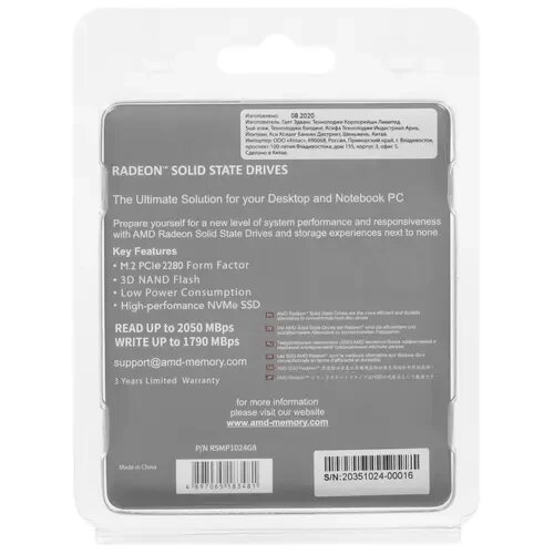 Твердотельный накопитель SSD AMD Radeon R5 M.2 2280 1024GB R5MP1024G8)
