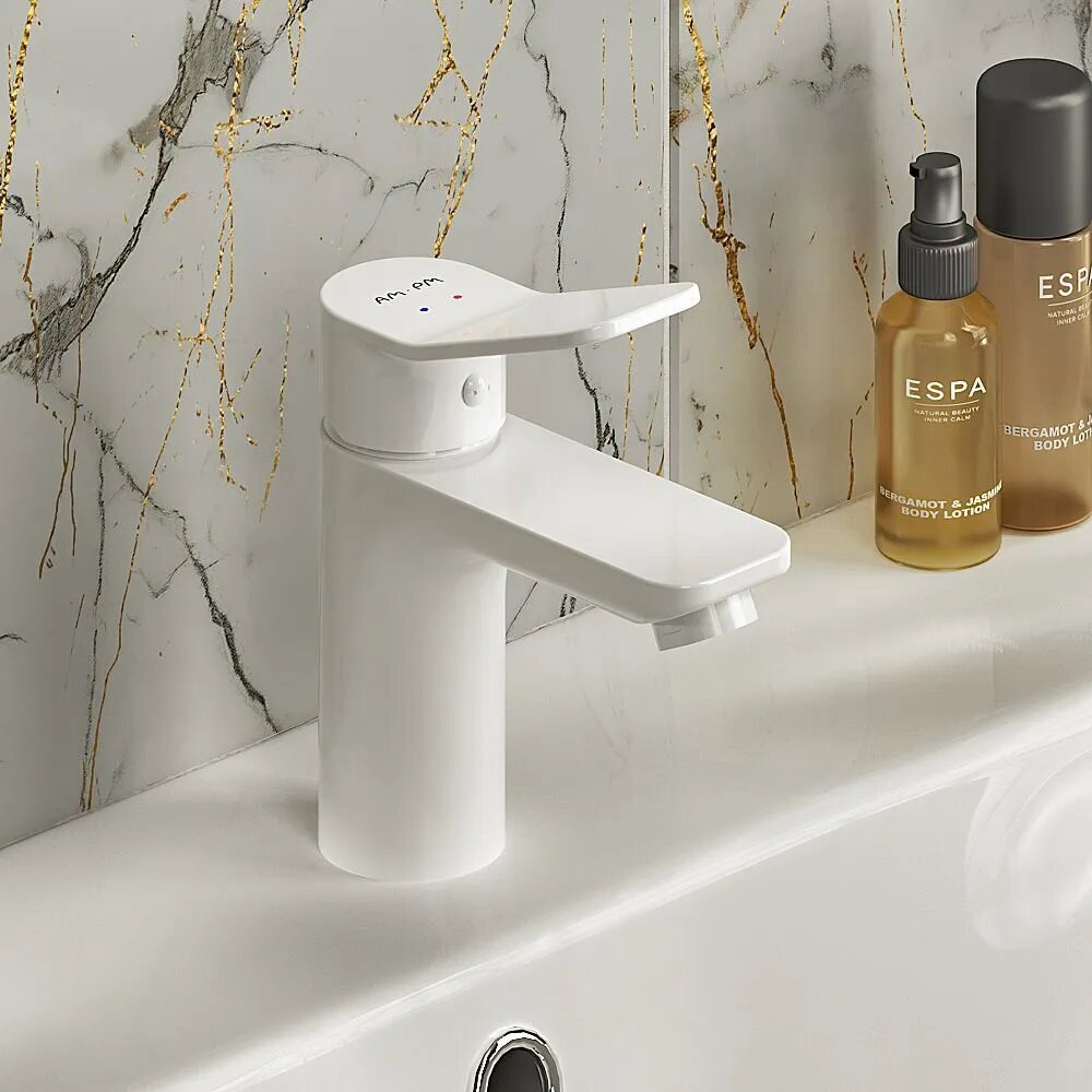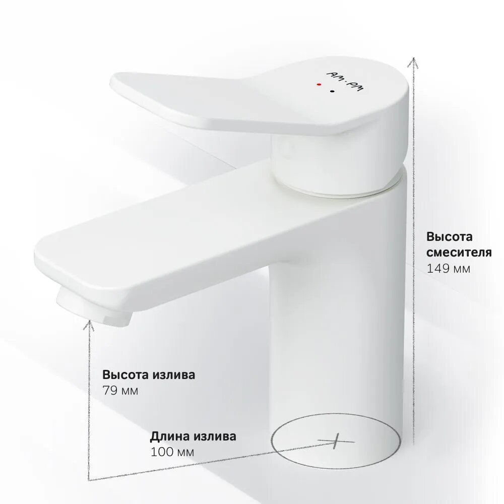 Смеситель для раковины в ванную AM.PM Brava белый, кран для ванной в раковину, для умывальника, излив 100 мм, керамический картридж Soft Motion, высококачественная латунь,Германия, Гарантия 10 лет