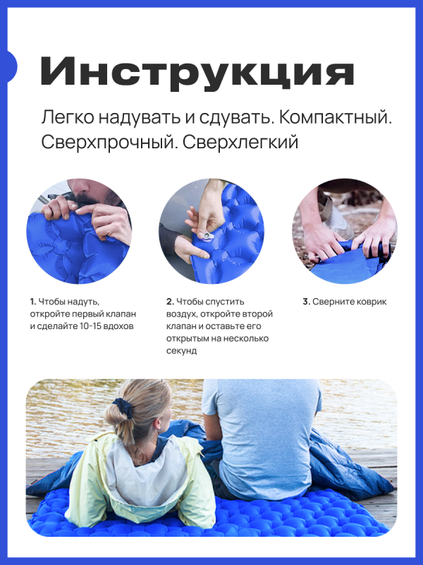 | Плюсы: | Легкий, компактный, быстро Надувается и сдувается. |