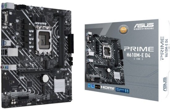 Материнская плата ASUS PRO H610M-C D4-CSM, LGA1700, B610, 2*DDR4, DP, D-Sub, HDMIx1, SATA3 + RAID, Audio, Gb LAN, USB 3.2*6, USB 2.0*6, COM port, mATX; 90MB1A30-M0EAYC
