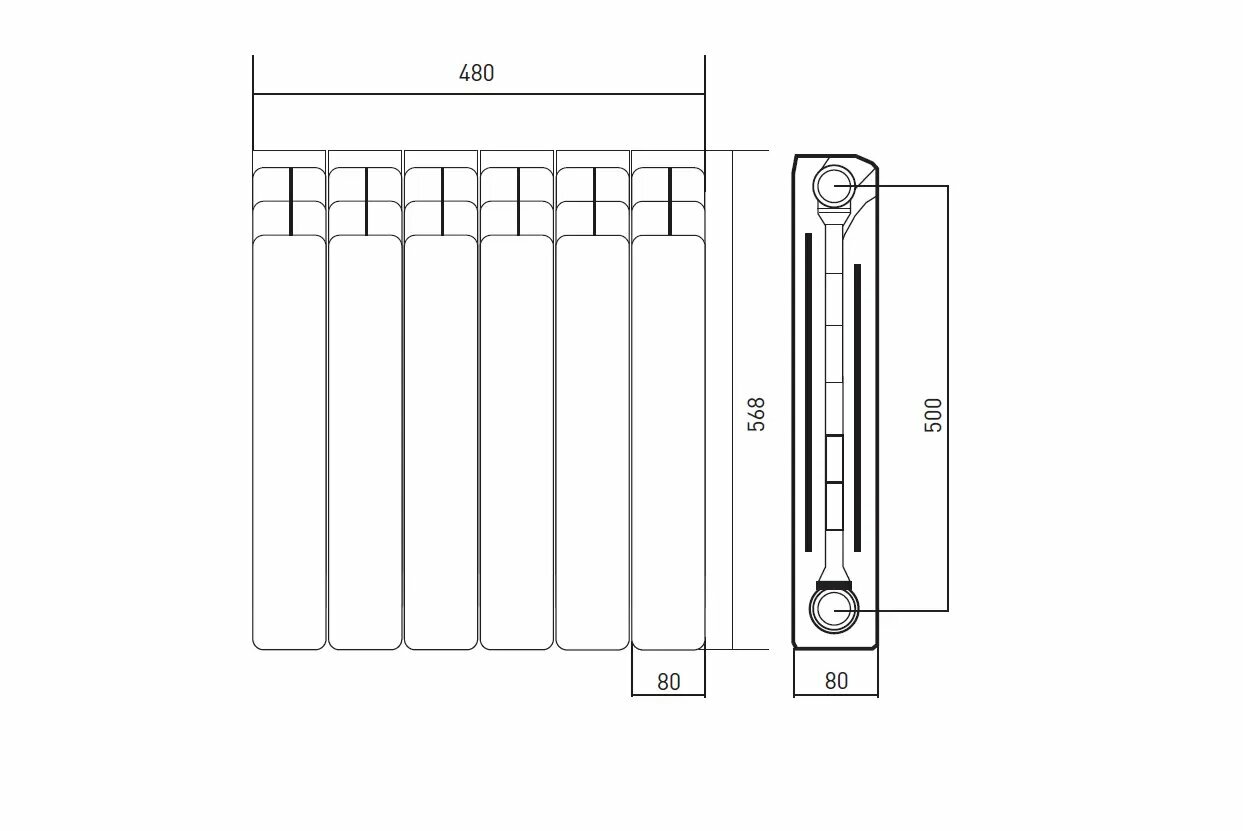 Радиатор 500/80/6 6 секций боковое подключение биметалл белый