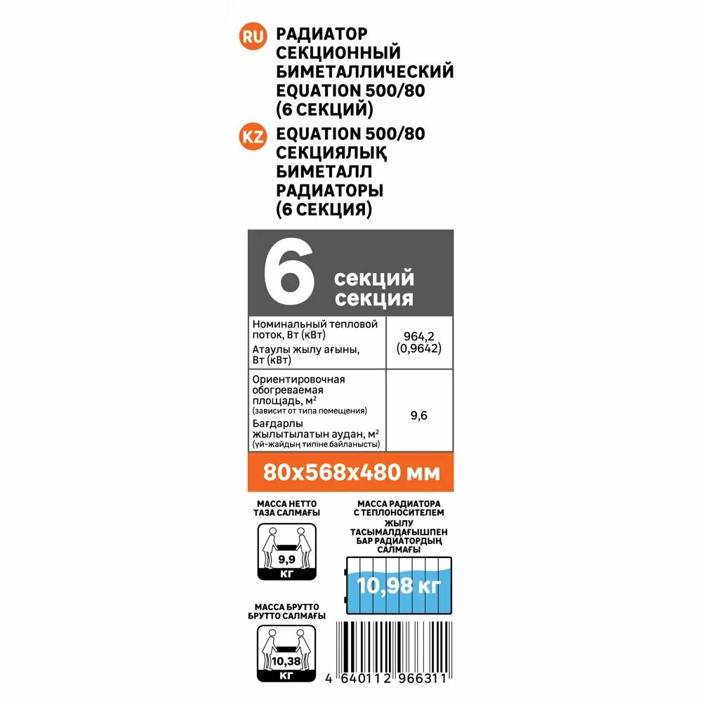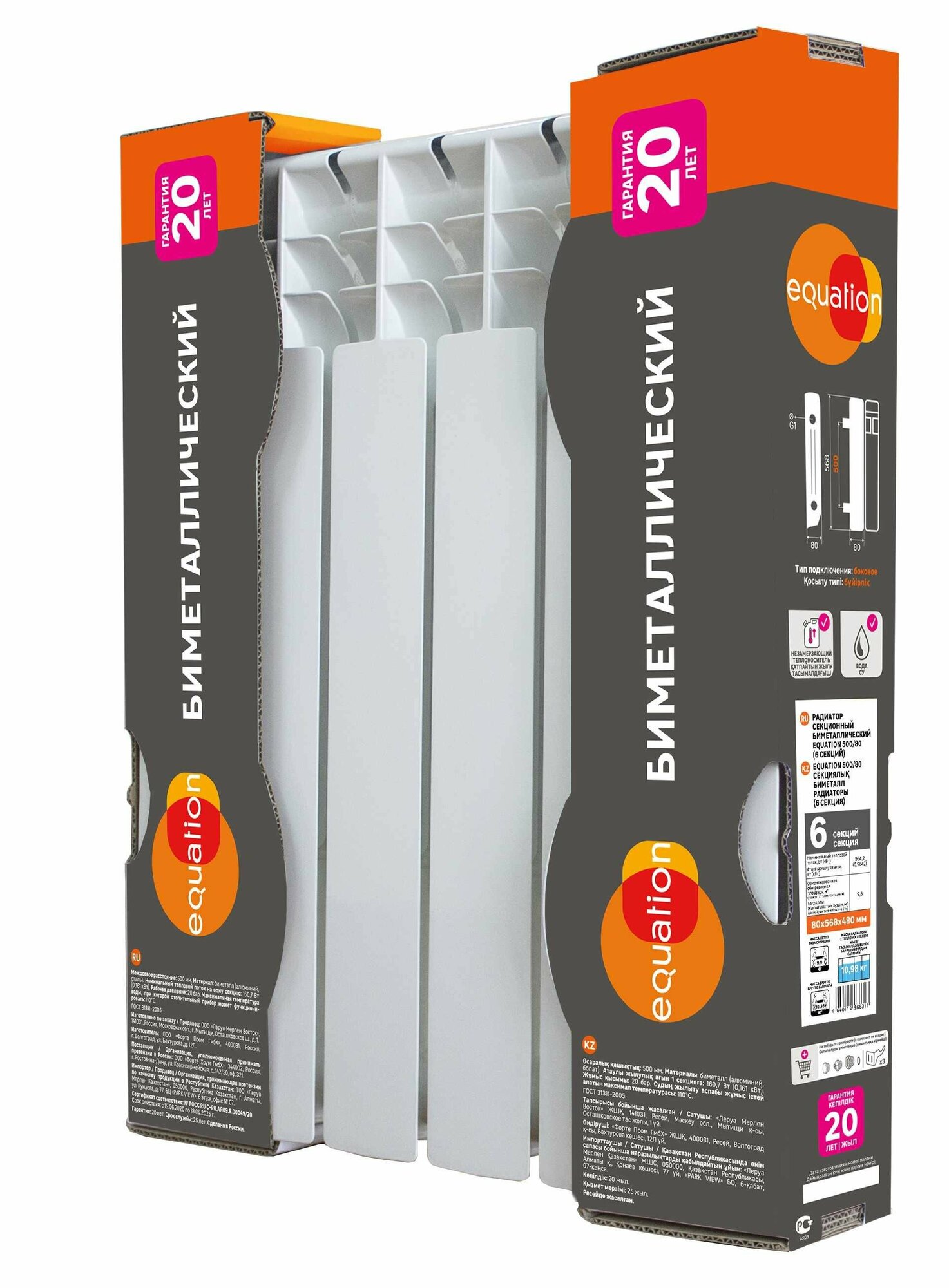 Радиатор Equation 500/80/6, 6 секций, боковое подключение, биметалл