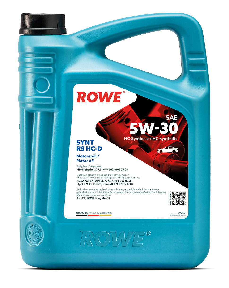 Моторное масло ROWE HIGHTEC SYNT RS HC-D SAE 5W-30 NEW 5л для бензиновых двигателей, для дизельных безсажевых фильтров (опель, фольксваген, бмв, мерседес и т.д)