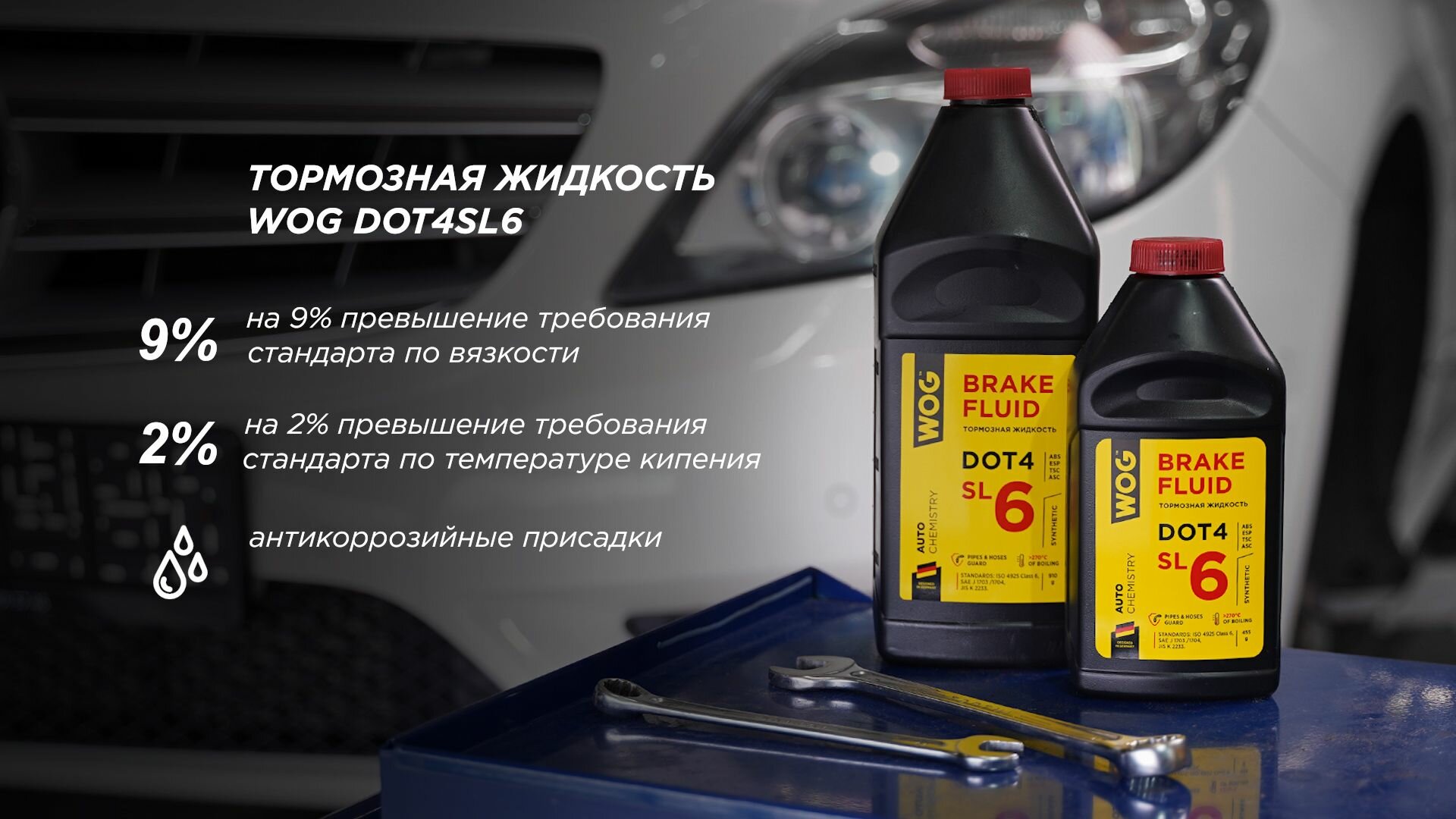 WOG WGC0143 Жидкость тормозная 910гр - DOT 4 SL6, синтетическая для авто с ABS, ESP, TSC и ASC, соответствует: ISO 4925 Class 6, SAE J 1703/1704, JIS K 2233