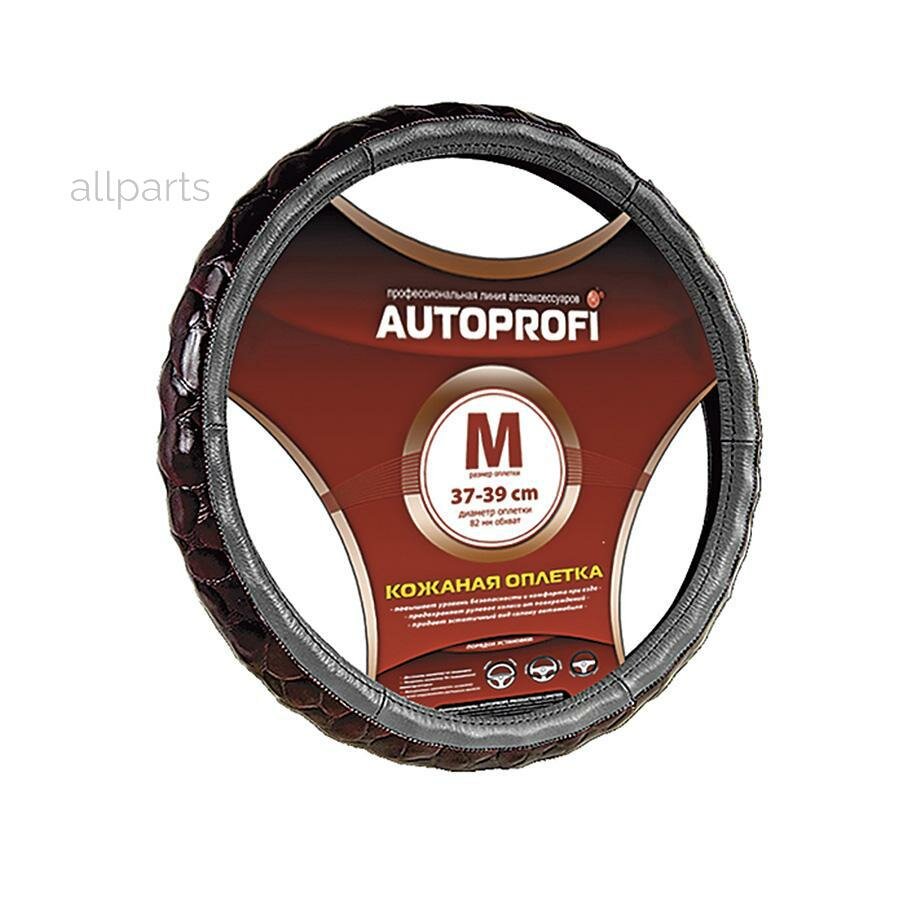 Оплётка Руля, Натуральная Кожа/Вставки Из Pu Кожи "Под Крокодила" Тёмн.Серый, Разм. М, AUTOPROFI арт. AP-156 D.GY (M)