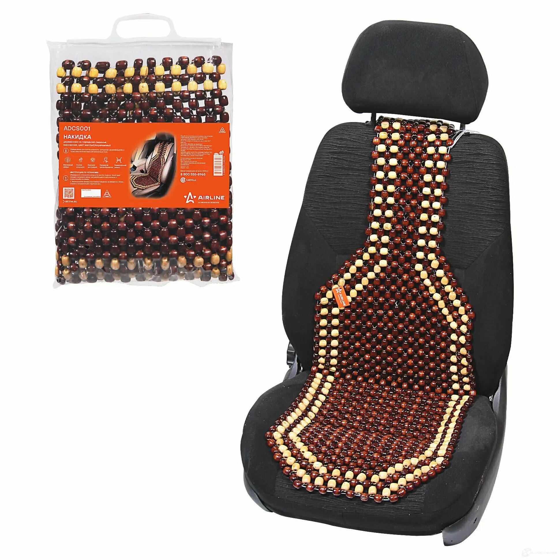 ADCS001 AIRLINE Накидка деревянная на перед. сиденье, массажная, цвет желт./коричн.(ADCS001)
