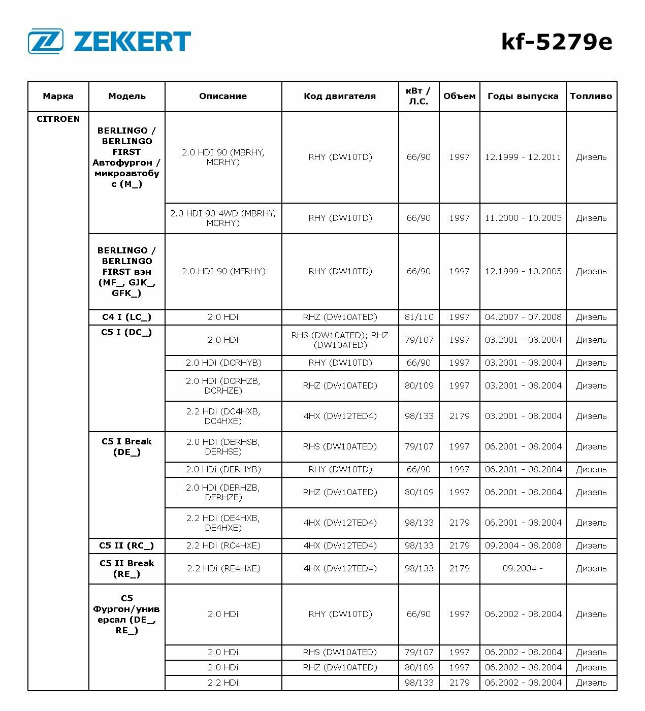 Купить Фильтр Топл. Eco Citroen Berlingo 99-, C5 I, Ii 01-, Jumpy I, Ii 00-, Peugeot 206 99-, Partner 00-, Zekkert арт. KF5279E