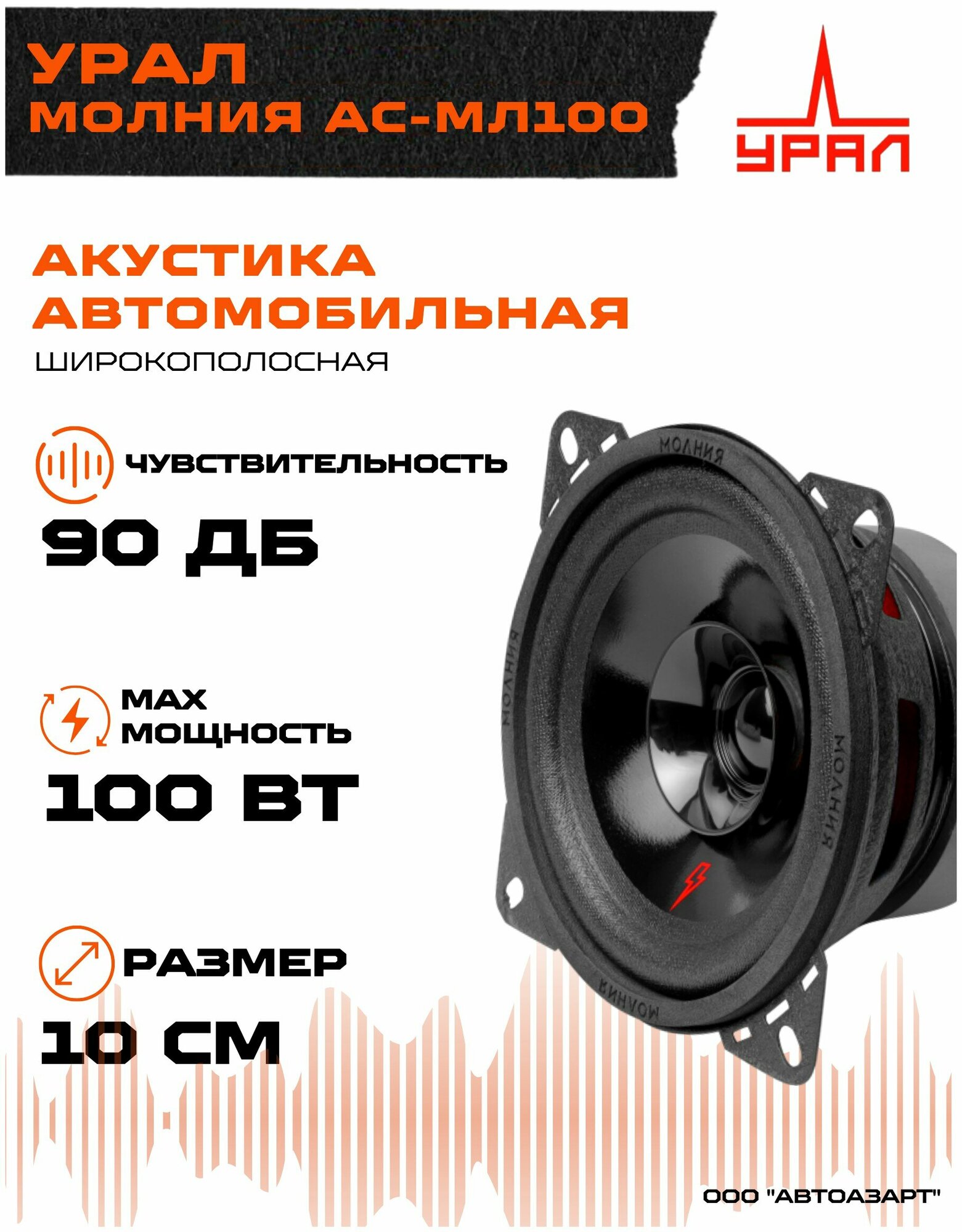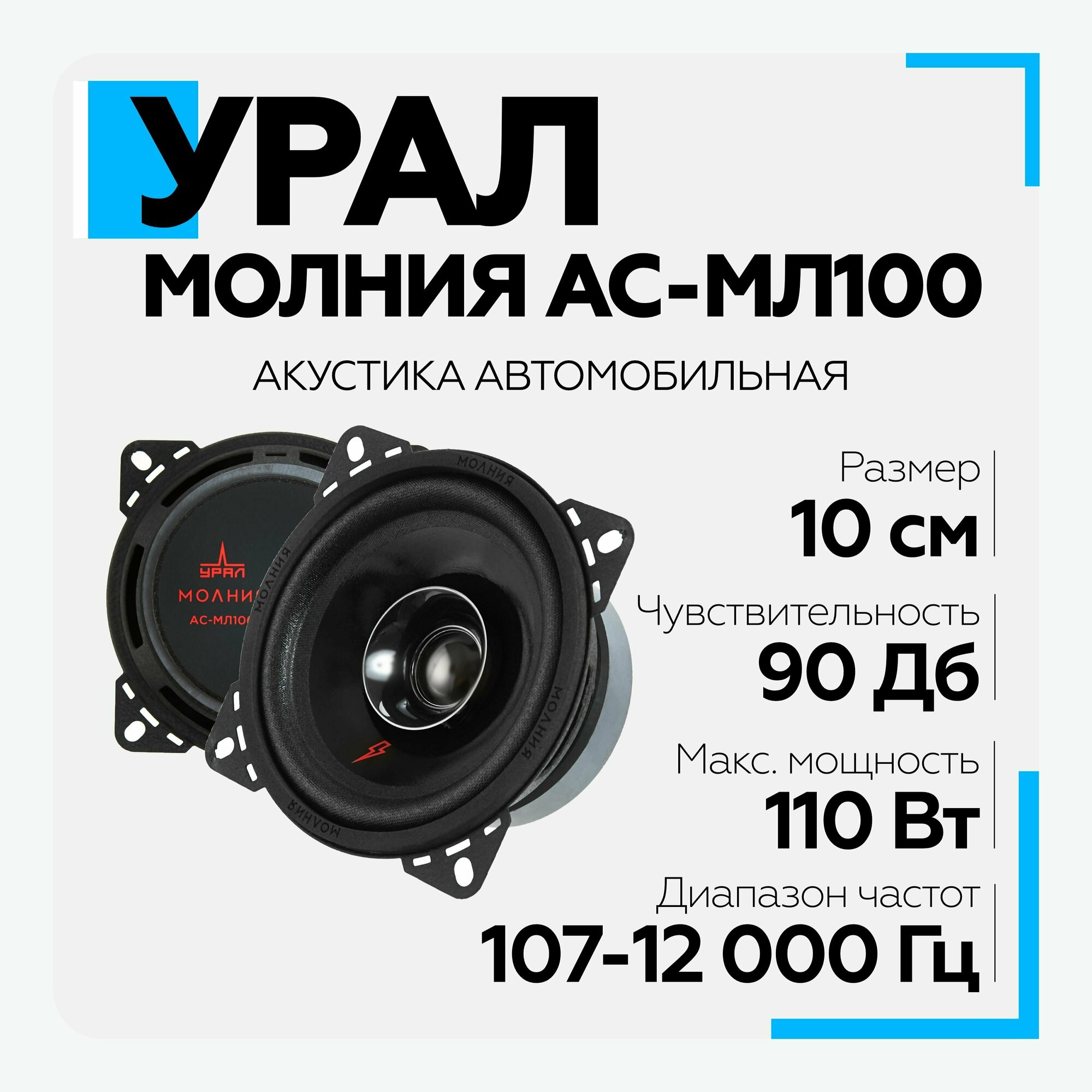 Автомобильная акустика Урал Молния АС-МЛ100 (10см) ( Громкая , широкополосная , пара)